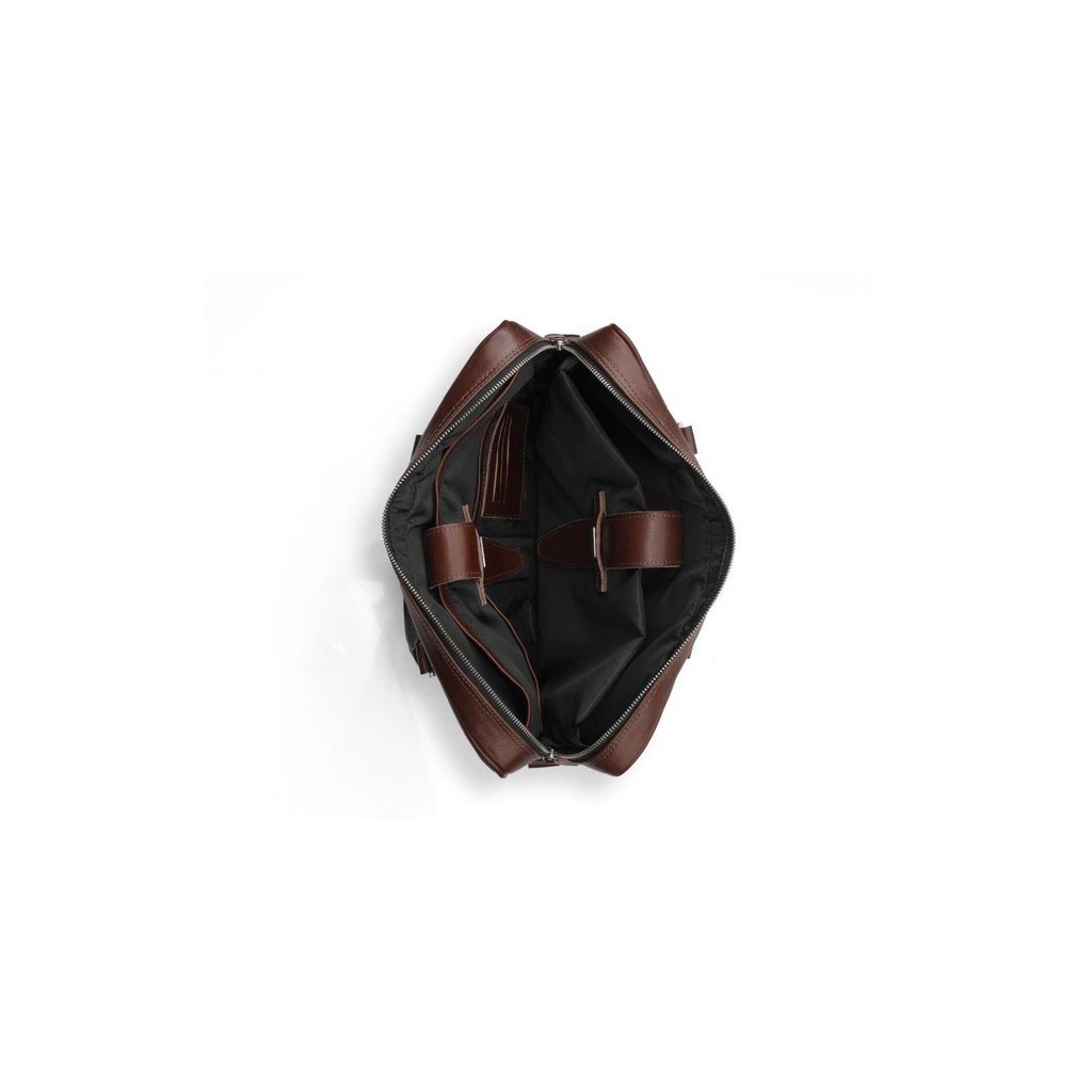 Kvalita, elegancia a štýl. Toto všetko v jednej praktickej taške pre pánov do práce. Taška je vyrobená z pravej kože s kvalitným spracovaním a doplnkami. Pohodlne sa nosí popruhom na ramene alebo uškami v ruke. Vnútro je prispôsobené na dokumenty vo formáte A4, notebook s vystuženou priehradkou a malými vreckami na drobnosti ako pero, telefón, peňaženku či tablet. Uzatvára sa zipsom.